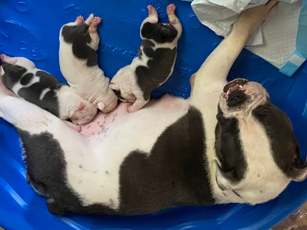In the midst of the birth process for Missy’s puppies, Tony was concerned that her milk had not started to flow. After having to bottle feed the previous litter, he was anxious at the thought that we may need to do it again. I shared that human mothers’ milk doesn’t usually come in until after the birth process is completed and the baby is put on the mother’s breast. The baby’s sucking stimulates the let down and the colostrum begins to flow. I wasn’t worried. I was focused on the births, and felt confident that the process would be the same for Missy.